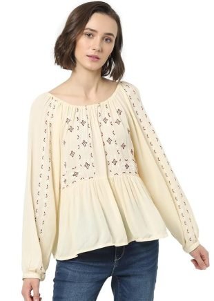 VERO MODA Tie-Up Neck Puff Sleeves Gathered Lace Detail Top