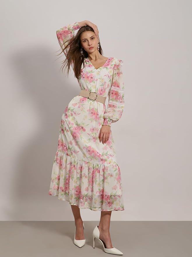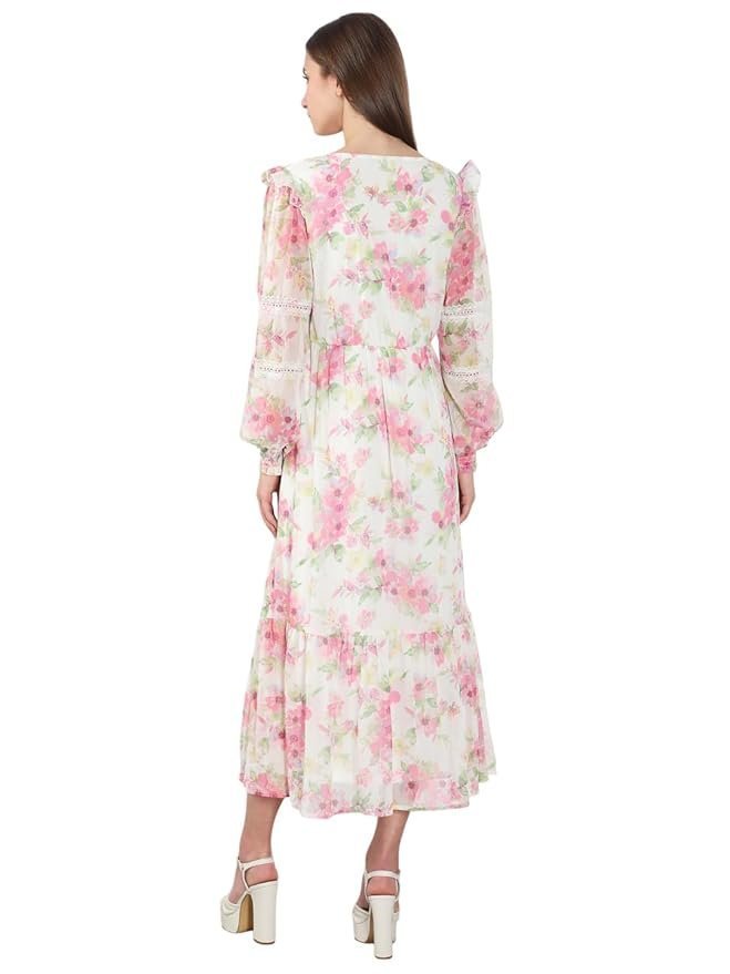 ERO MODA Women’s Polyester Fit and Flare Maxi Dress