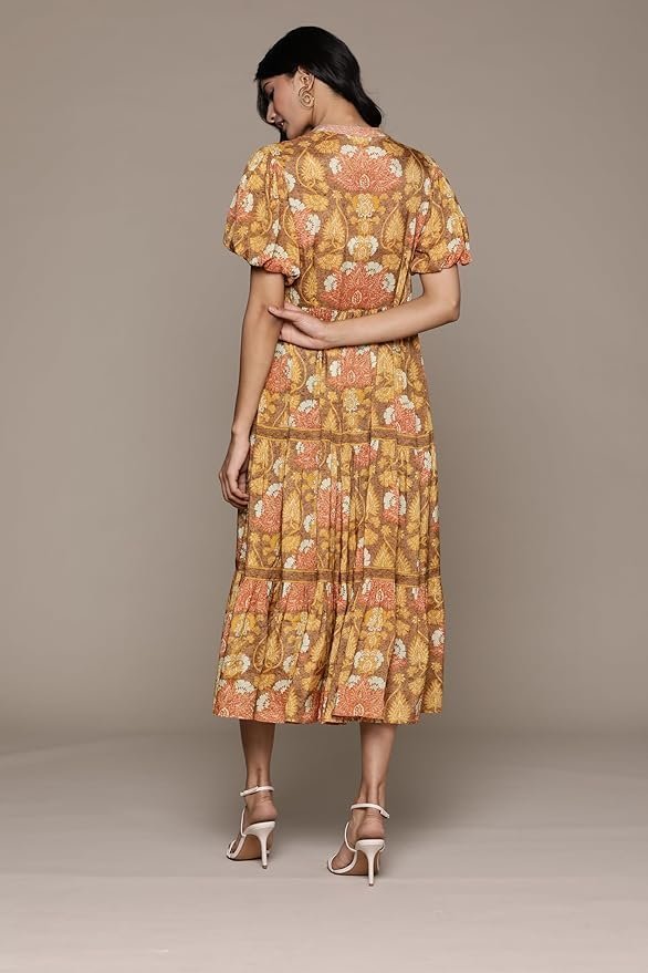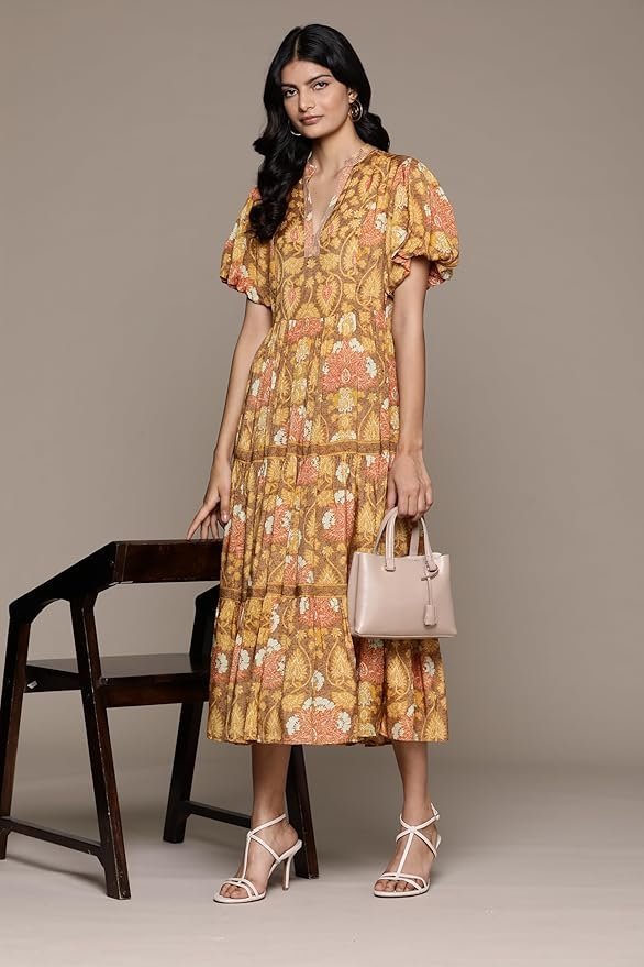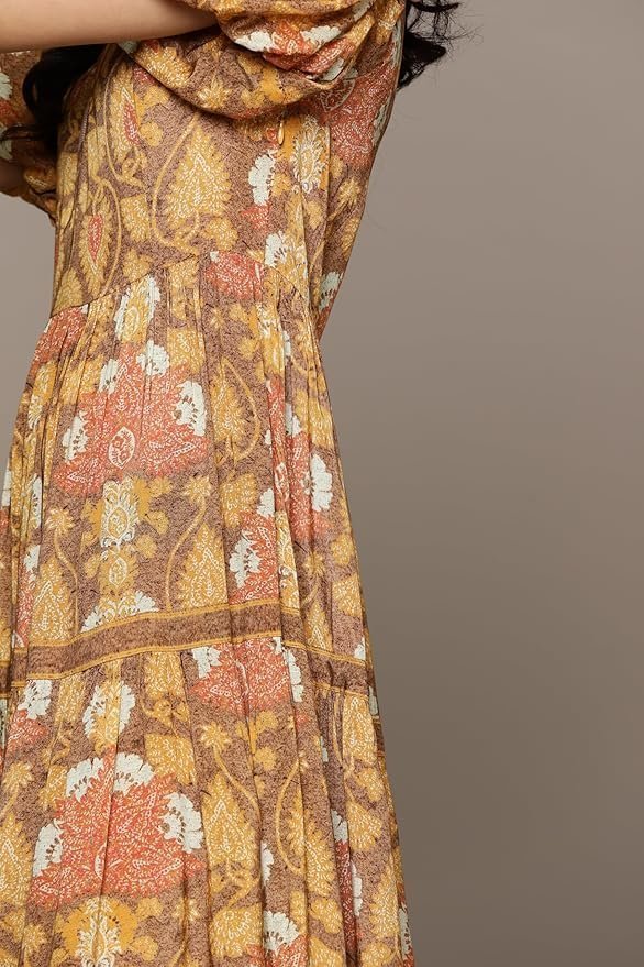 Kumar Yellow Paisley Print Long Dress quantity