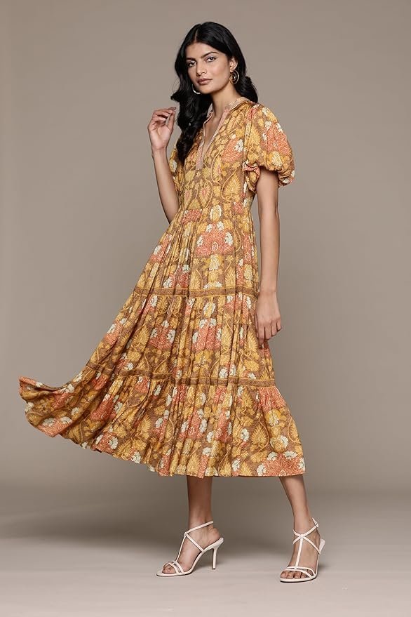 Kumar Yellow Paisley Print Long Dress