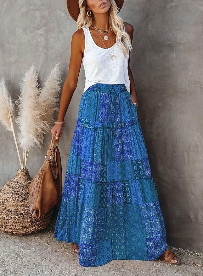 • QUALITY FLOWING MATERIAL : Boho maxi skirt, long skirts for women high waist is made of soft and skin-friendly polyester. Floral maxi skirt with pockets, womens skirt is fitted for most body shape that easy to put on or take off. Whether it is skiing or daily wear that keep you chic in all days.Hippie cute skirts can be used as a exquisite gift give your girlfriend, wife, family, friend, girls, daughter.